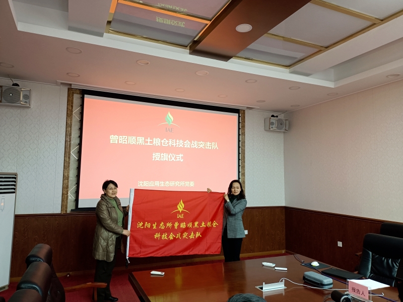 2023年3月21日,在中國科學(xué)院沈陽應(yīng)用生態(tài)研究所(下稱“沈陽生態(tài)所”)開展“弘揚(yáng)科學(xué)家精神”主題活動(dòng)并舉行“曾昭順黑土糧倉科技會(huì)戰(zhàn)突擊隊(duì)”授旗儀式。參加儀式的有沈陽生態(tài)所副所長(zhǎng)方運(yùn)霆,黨委副書記、紀(jì)委書記郝欣,黨群辦公室主任、紀(jì)委副書記胡志斌,以及“黑土糧倉”沈陽示范區(qū)負(fù)責(zé)人張麗莉研究員、專家組武志杰研究員、示范區(qū)團(tuán)隊(duì)張旭東研究員、梁文舉研究員、陳欣研究員、尹光華研究員及青年科技骨干們。