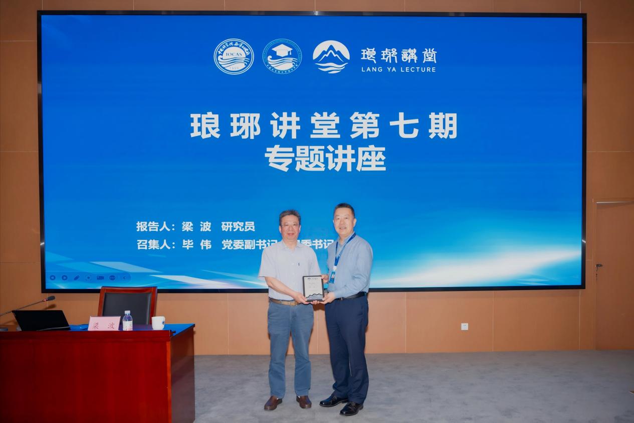 會議期間,黨委副書記、紀委書記畢偉為梁波研究員頒發(fā)了“瑯琊講堂”紀念牌。