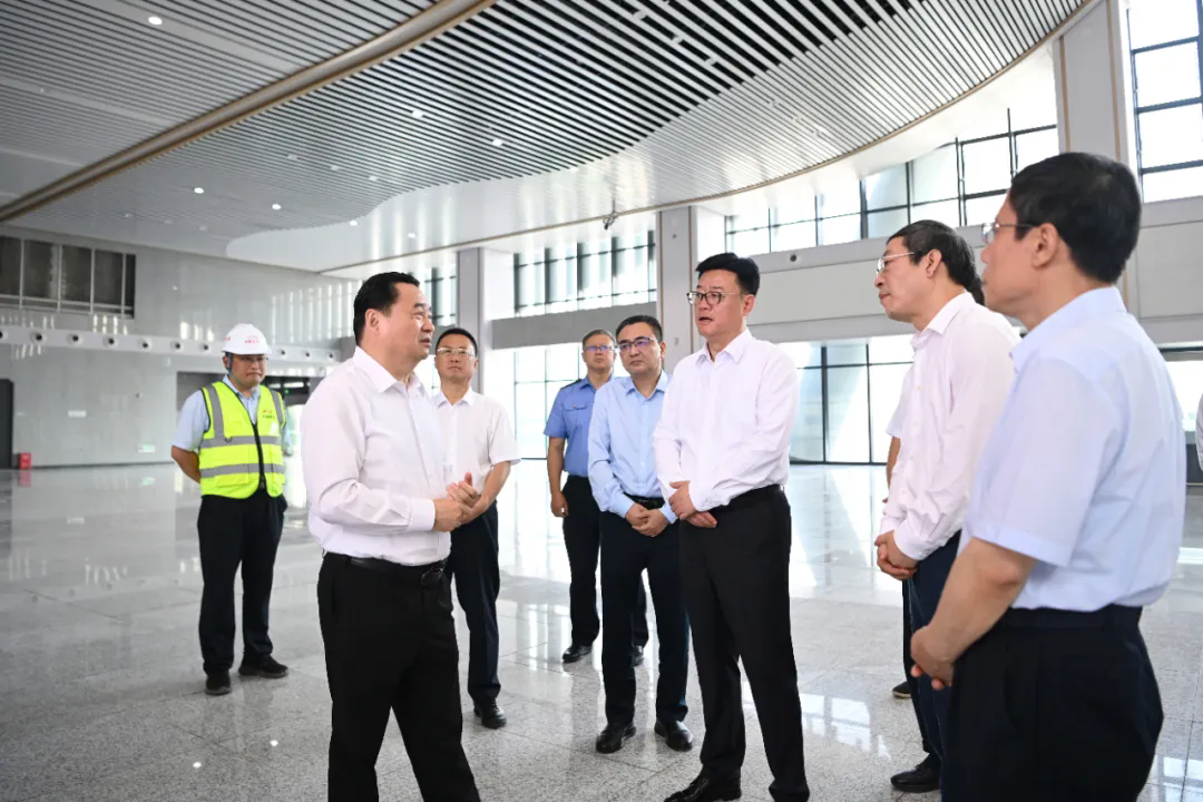 省委書記、省人大常委會主任郝鵬在沈白高鐵伯官站察看工程建設(shè)進(jìn)展。